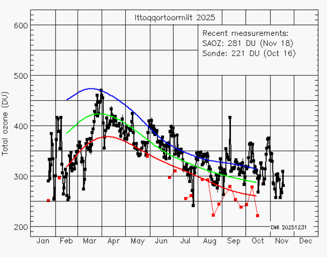 Green curve = satellite average measurements from 1979-1988 (NASA-TOMS)
